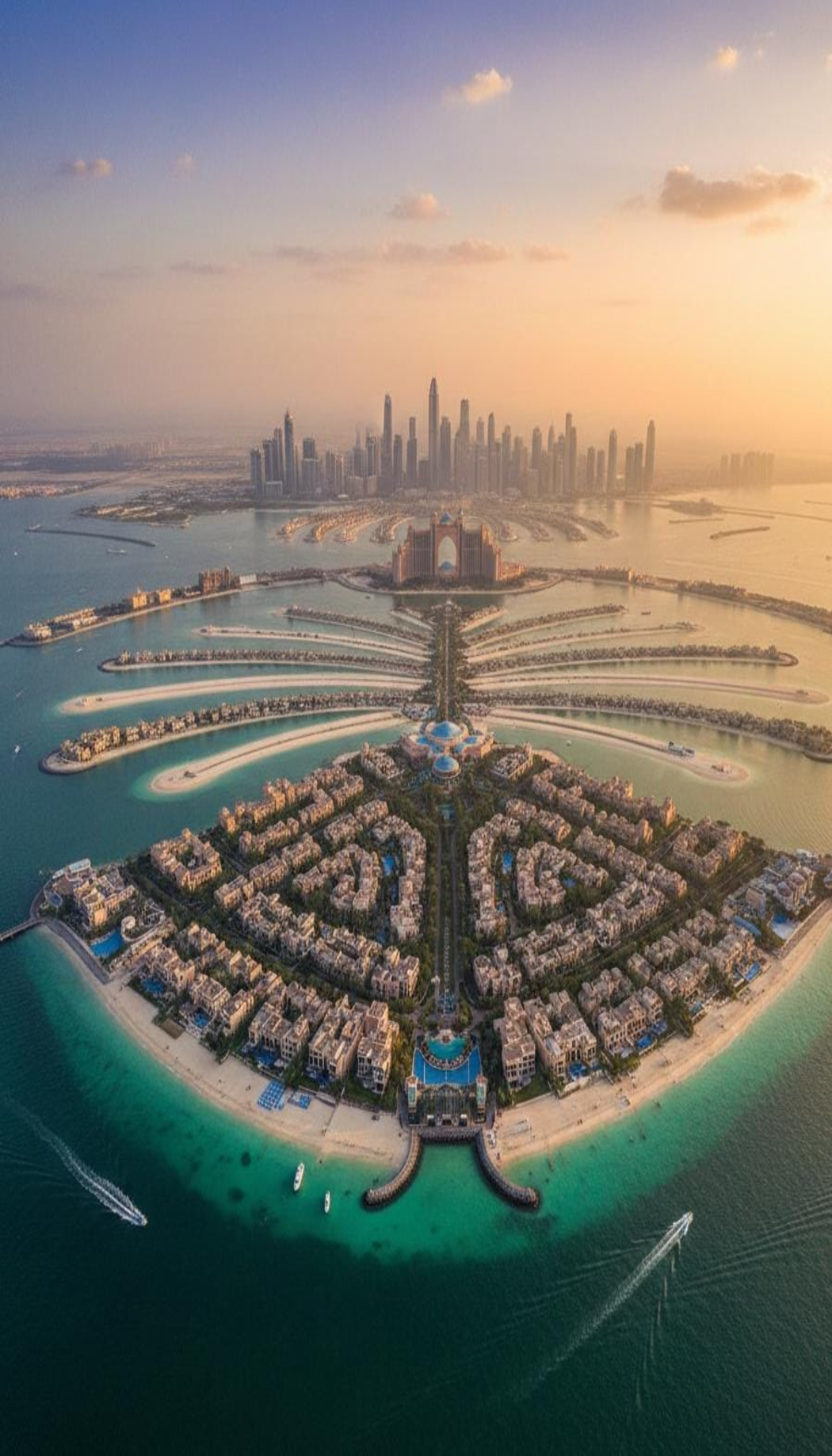 Palm Jumeirah is Dubai’s most luxurious man-made island, shaped like a palm tree and lined